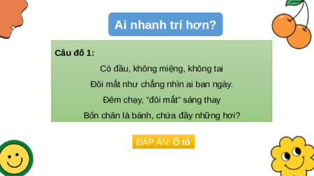 Bốn chân là bánh, chứa đầy những hơi? ĐÁP ÁN: Ô tô Câu đố 2:
