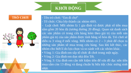- Luật chơi: Mỗi nhóm là 1 gia đình và được phát số tiền mua
