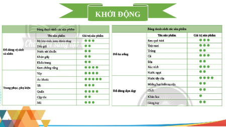 những sản phẩm sẽ mua trong cửa hàng. Sau khi kết thúc, các