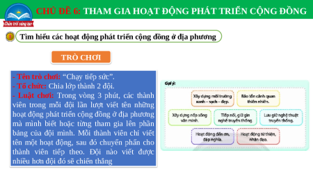 Tìm hiểu các hoạt động phát triển cộng đồng ở địa phương TRÒ CHƠI