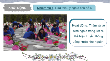 Hoạt động: Thăm và vệ sinh nghĩa trang liệt sĩ, thể hiện truyền thống uống nước nhớ nguồn. KHỞI ĐỘNG