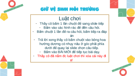 - Thầy cô đã nắm đc luật chơi thì xóa cái này đi ạ!