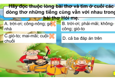 Hãy đọc thuộc lòng bài thơ và tìm ở cuối các