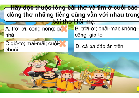 dòng thơ những tiếng cùng vần với nhau trong ….. bài thơ Hỏi mẹ.
