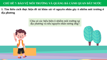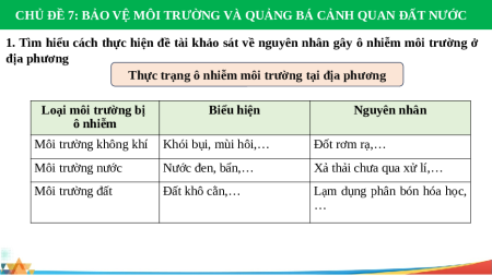 1. Tìm hiểu cách thực hiện đề tài khảo sát về nguyên nhân gây ô nhiễm môi trường ở địa phương