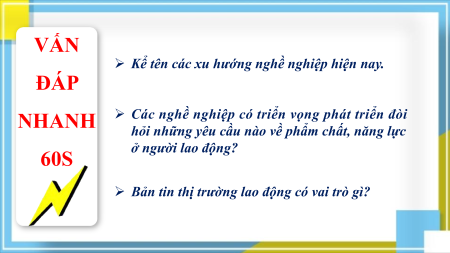 Ø Kể tên các xu hướng nghề nghiệp hiện nay. ĐÁP