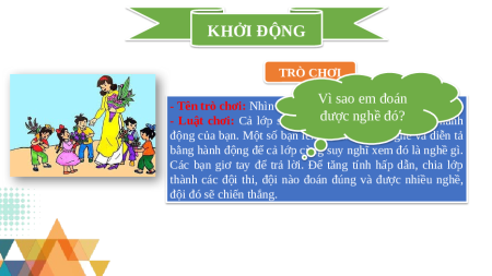 - Luật chơi: Cả lớp sẽ đoán nghề nghiệp thông qua hành