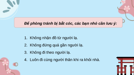 Để phòng tránh bị bắt cóc, các bạn nhỏ cần lưu ý:
