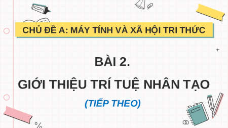 Giáo án Powerpoint Chủ đề A Bài 2 Tin học 12 Cánh diều: Giới thiệu về trí tuệ nhân tạo (tiếp theo)