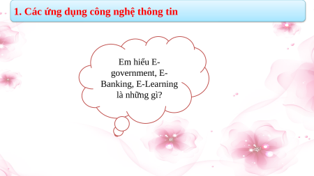 1. Các ứng dụng công nghệ thông tin Em hiểu E- government, E- Banking, E-Learning là những gì?