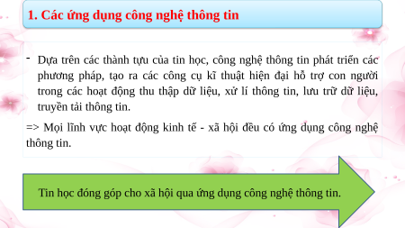 - Dựa trên các thành tựu của tin học, công nghệ thông tin phát triển các