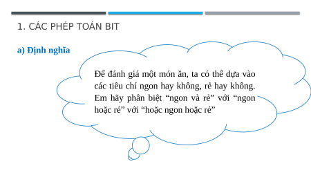 hoặc rẻ” với “hoặc ngon hoặc rẻ” 1. CÁC PHÉP TOÁN BIT a) Định nghĩa