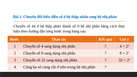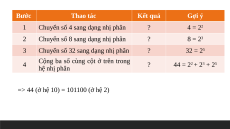 => 44 (ở hệ 10) = 101100 (ở hệ 2)