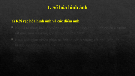 a) Rời rạc hóa hình ảnh và các điểm ảnh