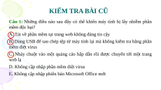 E. Không cập nhập phiên bản Microsoft Office mới KIỂM TRA BÀI CŨ