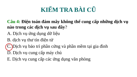 Câu 4: Điện toán đám mây không thể cung cấp những dịch vụ
