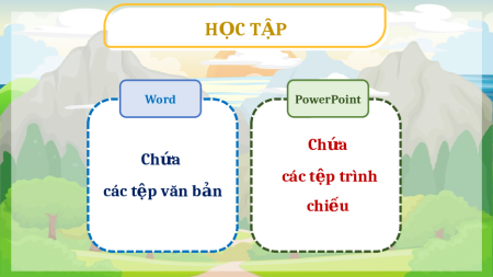 Trong mỗi thư mục đó lại có các thư mục riêng. GIẢI TRÍ NH Ả NH C Ạ VIDEO Ch a cá ứ c t p ệ nh ả Ch a cá ứ c t p ệ nh c ạ Ch a cá ứ c t p ệ video H C T Ọ ẬP Word PowerPoint Ch a ứ Ch a ứ các tệp trình các tệp văn b n ả chiếu