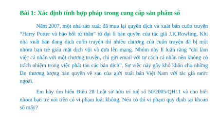 Bài 1: Xác định tính hợp pháp trong cung cấp sản phẩm số