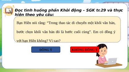 Bạn Hiền nói rằng: “Trong thao tác di chuyển một khối văn bản,