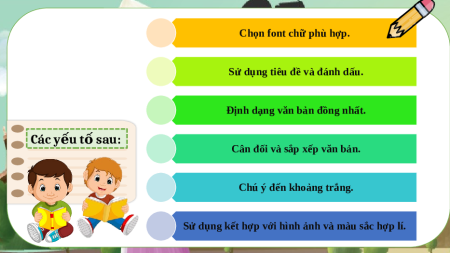 Sử dụng kết hợp với hình ảnh và màu sắc hợp lí. BÀI 5 THỰC HÀNH TỔNG HỢP