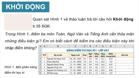 Hình 1. Một phần bảng điểm thi học kì GỢI Ý ĐÁP ÁN