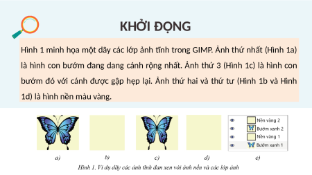 Hình 1 minh họa một dãy các lớp ảnh tĩnh trong GIMP. Ảnh thứ nhất (Hình 1a)
