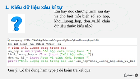 Gợi ý: Có thể dùng hàm type() để kiểm tra kết quả 3