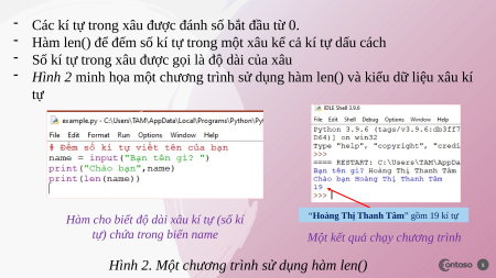 Hình 2 minh họa một chương trình sử dụng hàm len() và kiểu dữ liệu xâu kí