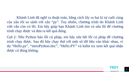 Gợi ý: Nếu Python báo lỗi cú pháp, em hãy sửa hết lỗi cú pháp để chương