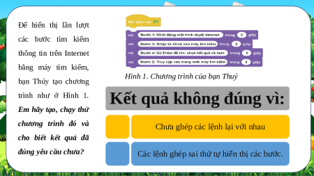 Để hiển thị lần lượt các bước tìm kiếm thông tin trên Internet bằng máy tìm kiếm,