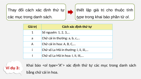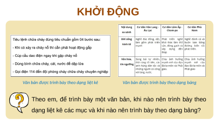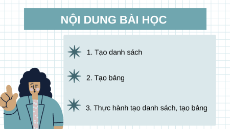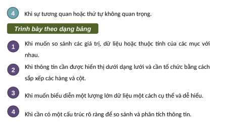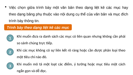 dạng liệt kê các mục và khi nào nên trình bày theo dạng bảng?