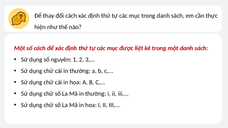 Khi các mục không có sự liên kết rõ ràng hoặc cần được phân loại theo một tiêu chí nào đó. 3