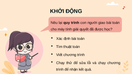 cho máy tính giải quyết đã được học? Xác định bài toán Tìm thuật toán Viết chương trình
