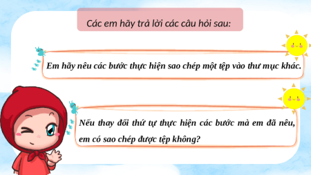 Em hãy nêu các bước thực hiện sao chép một tệp vào thư mục khác.