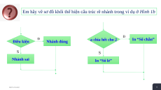 Em hãy vẽ sơ đồ khối thể hiện cấu trúc rẽ nhánh trong ví dụ ở Hình 1b Đ Đ Điều kiện Nhánh đúng a chia hết cho 2 In “Số chẵn” S S Nhánh sai In “Số lẻ” Add a Footer 4