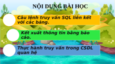 Giáo án Powerpoint Chủ đề F Bài 6 Tin học 11 Cánh diều: Truy vấn trong cơ sở dữ liệu quan hệ (tiếp theo)