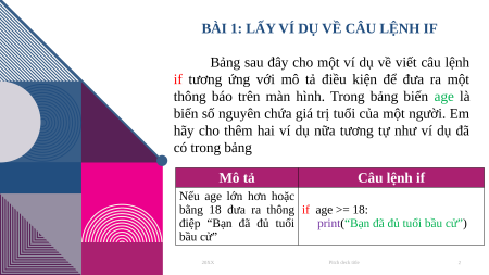 điệp “Bạn đã đủ tuổi print(“Bạn đã đủ tuổi bầu cử”) bầu cử” 20XX Pitch deck title 2 BÀI 2: CHIA KẸO