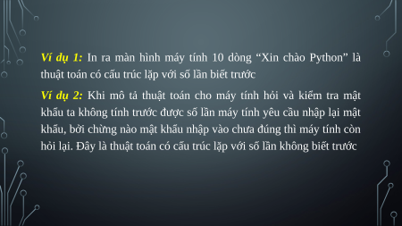 lần liên tiếp trong quá trình thực hiện thuật toán thì cần dùng cấu trúc lặp.