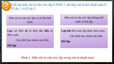 Với hai mẫu mô tả cấu trúc lặp ở Hình 1, em hãy mô tả hai thuật toán ở