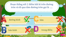 tròn và đi qua tâm đường tròn gọi là …. đường kính tâm bán kính trung điểm