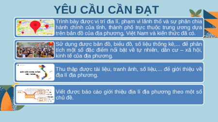 Viết được báo cáo giới thiệu địa lí địa phương theo một số chủ đề.