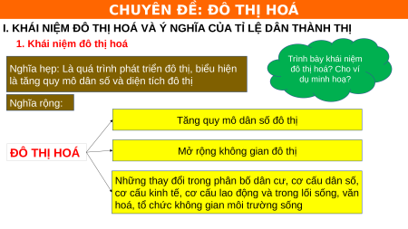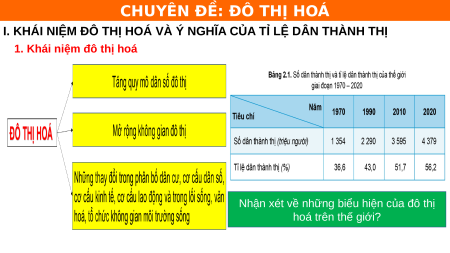 I. KHÁI NIỆM ĐÔ THỊ HOÁ VÀ Ý NGHĨA CỦA TỈ LỆ DÂN THÀNH THỊ