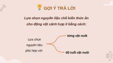 cho động vật cảnh hợp lí bằng cách: từng vật nuôi Lựa chọn nguyên liệu phù hợp với