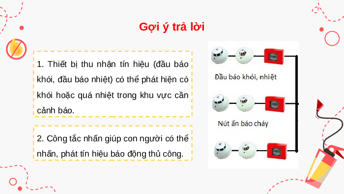 nhấn, phát tín hiệu báo động thủ công. Gợi ý trả lời