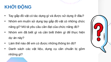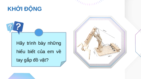 TIẾT HỌC MỚI HÔM NAY! KHỞI ĐỘNG Hãy trình bày những hiểu biết của em về tay gắp đồ vật? KHỞI ĐỘNG