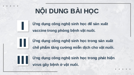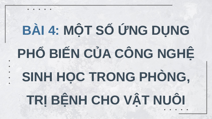 Giáo án Powerpoint Chuyên đề Bài 4: Một số ứng dụng phổ biến của Công nghệ sinh học trong phòng, trị bệnh vật nuôi 11 Kết nối tri thức
