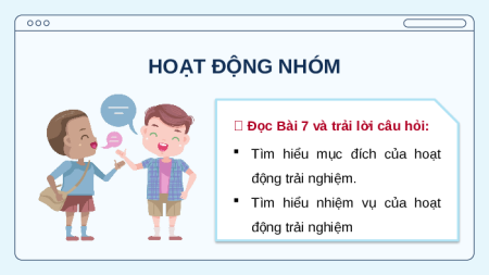 Tìm hiểu nhiệm vụ của hoạt động trải nghiệm