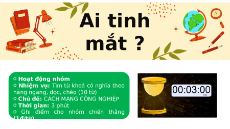 o Chủ đề: CÁCH MẠNG CÔNG NGHIỆP o Thời gian: 3 phút