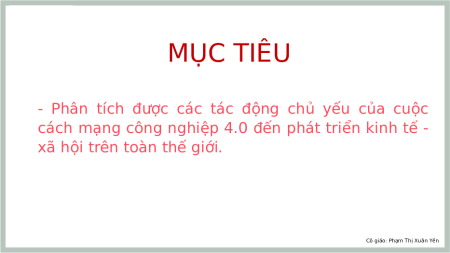 Giáo án Powerpoint chuyên đề Địa lí 11 Chân trời sáng tạo: Tác động của cách mạng công nghiệp 4.0 đến phát triển KT-XH trên thế giới