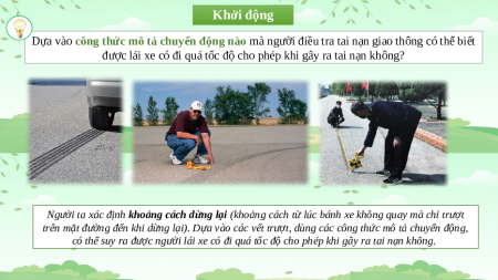 trên mặt đường đến khi dừng lại). Dựa vào các vết trượt, dùng các công thức mô tả chuyển động,